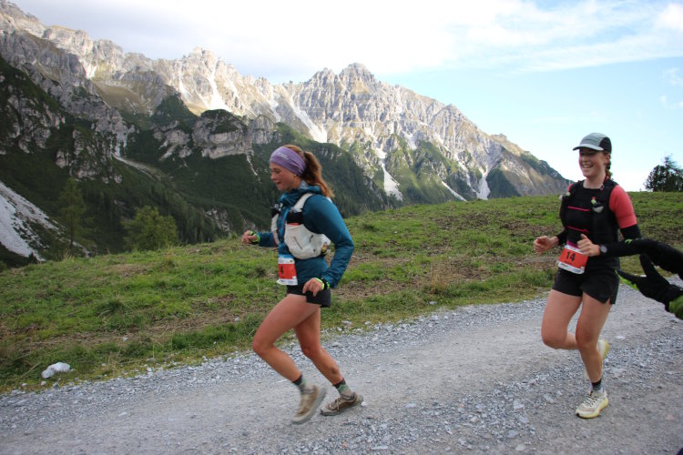 Am Weg zu Rang 2 und 3 bei den Damen K42. Laura Barraclough und Nadine Gleirscher. Foto Michael Gstrein TVB Stubai Tirol